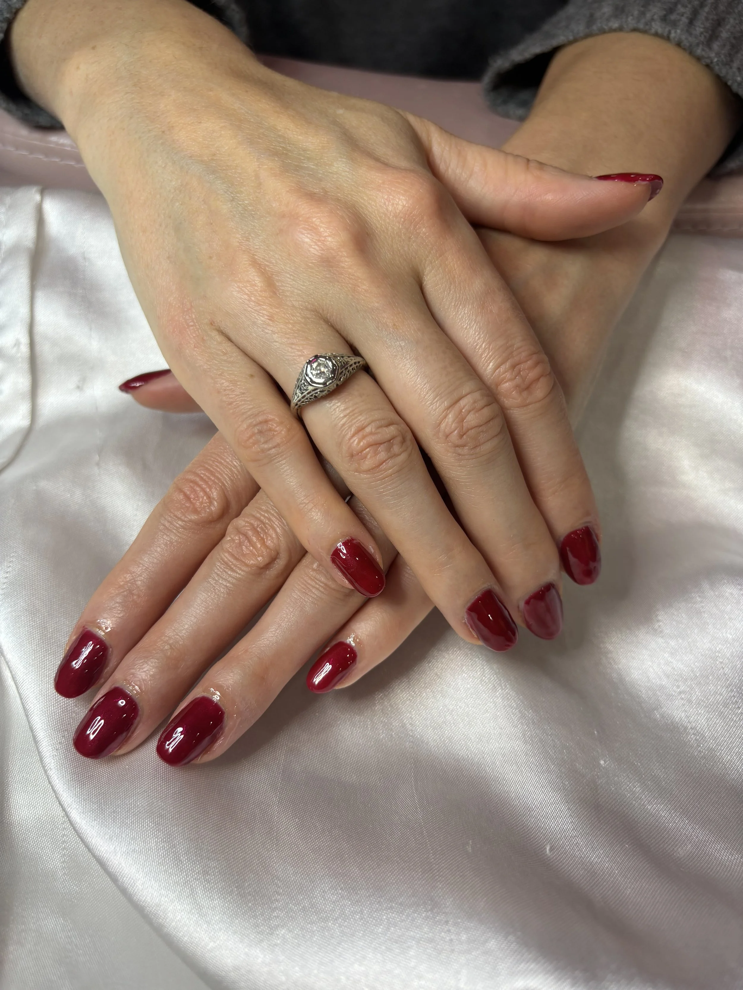 A gel overlay is where the gel is put directly over the natural nail to shape and structure it. It doesn’t lengthen or expand the nail, as with artificial nails. Instead, gel overlay creates an incredibly natural, clean, and simple appearance!
